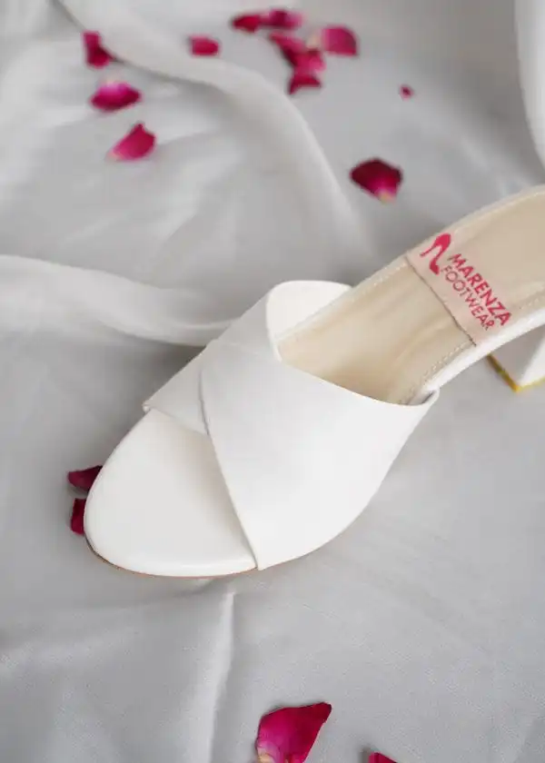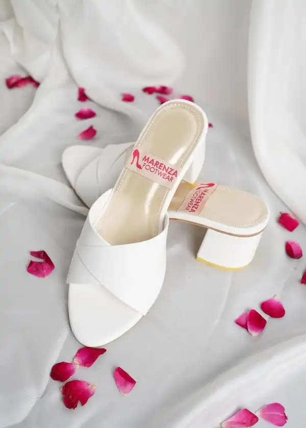 Cross-Strap Block Heels – White